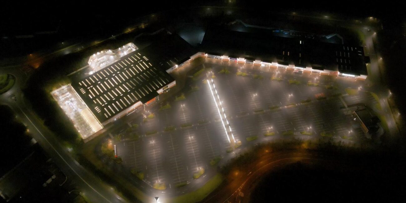 Naas Retail Park recently completed a successful lighting upgrade project, demonstrating a strong commitment to both sustainability and customer experience. The project replaced the entire common area lighting system with a new, highly efficient 100% LED lighting setup. This strategic upgrade